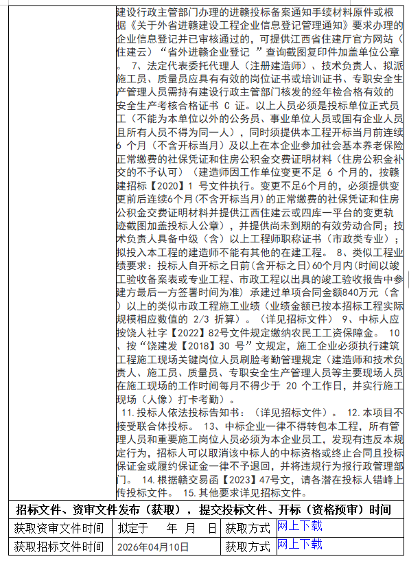 江西省房屋建筑和市政基礎設施工程施工招標公告